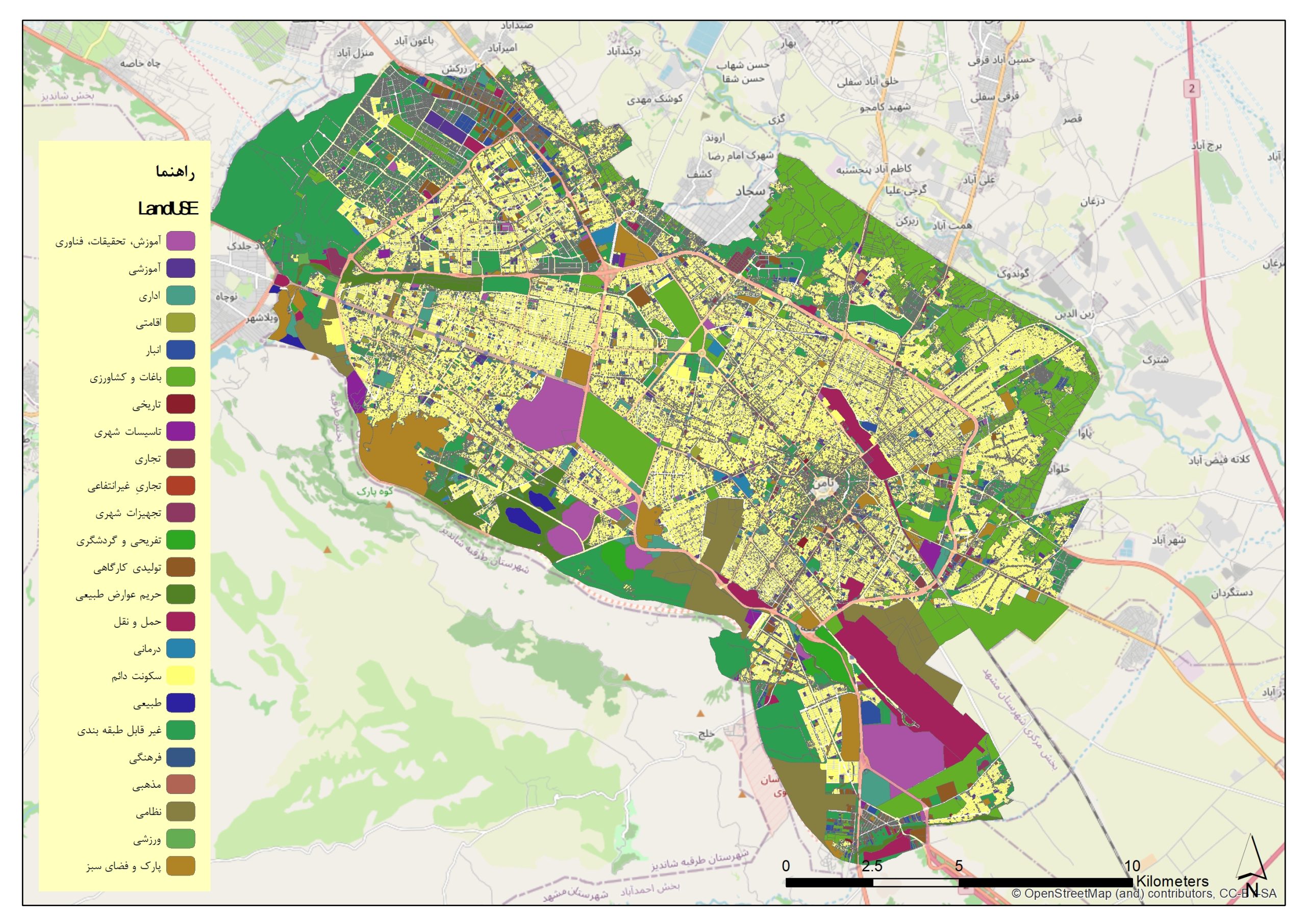 لایه آخرین وضعیت کاربری اراضی شهر مشهد تا سال ۱۳۹۵ یک منبع اطلاعاتی معتبر و پایهای است که وضعیت واقعی و نحوه استفاده از اراضی این کلانشهر را در مقطع زمانی مشخصی ثبت و ضبط کرده است. این لایه کاربری اراضی مشهد ۱۳۹۵ با ارائه طبقهبندی کامل کاربریهای شهری شامل مسکونی، تجاری، اداری، صنعتی، خدماتی، آموزشی، مذهبی و فضای سبز، یک نقشه دقیق از کاربری وضع موجود مشهد ارائه میدهد. دقت بالا و جزئیات کامل این لایه کاربری جدید مشهد (در بازه زمانی خود)، آن را به ابزاری ایدهآل برای مطالعات تحلیلی تبدیل مینماید.